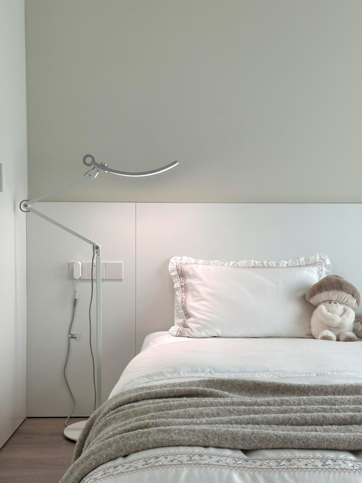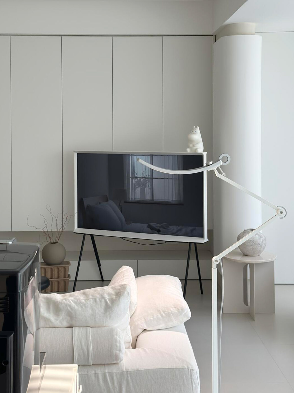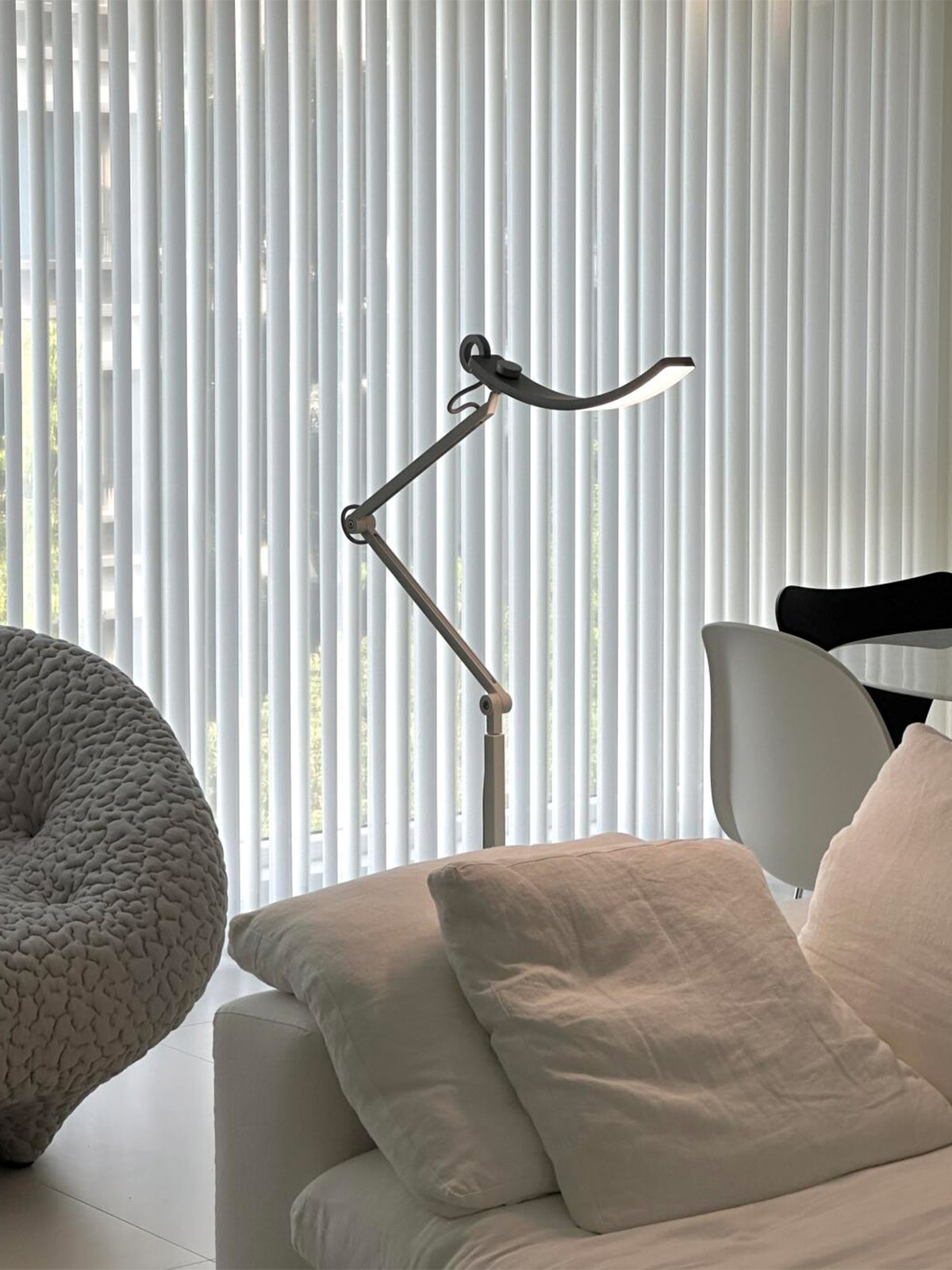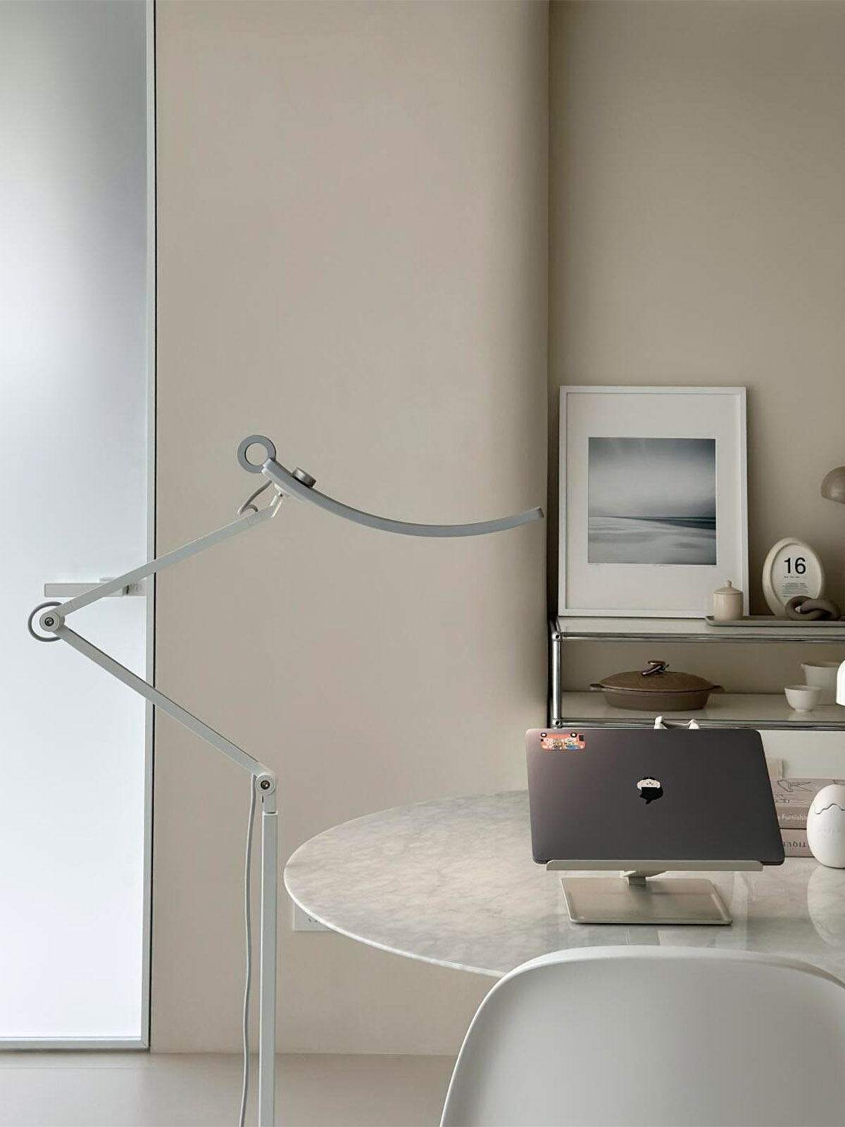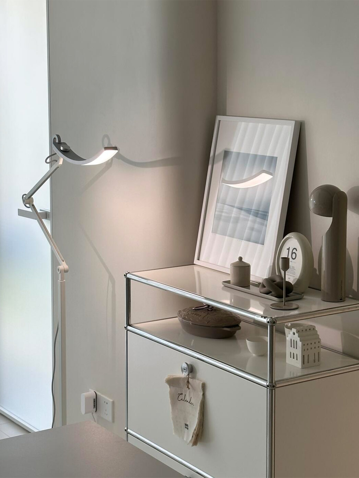 首先是光。我选择了专业的阅读灯,明基的这款落地灯光照范围足够大,明亮且均匀,书本和屏幕都不会反光或过暗。不管什么时候坐下来,光线都在那里安静等待,不用反复调试,就能轻松被包裹在最自然舒适的光线中。形态也很是我的审美,不过度设计,简单一盏,放在哪里都合适。