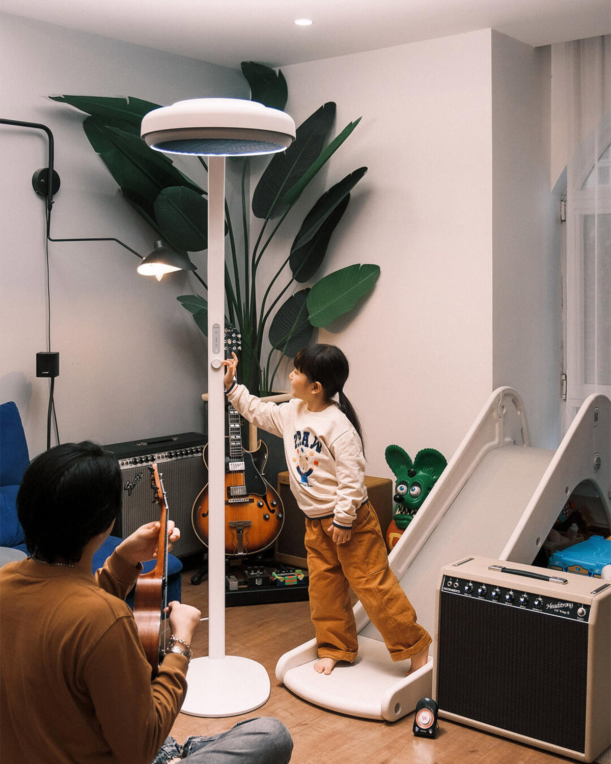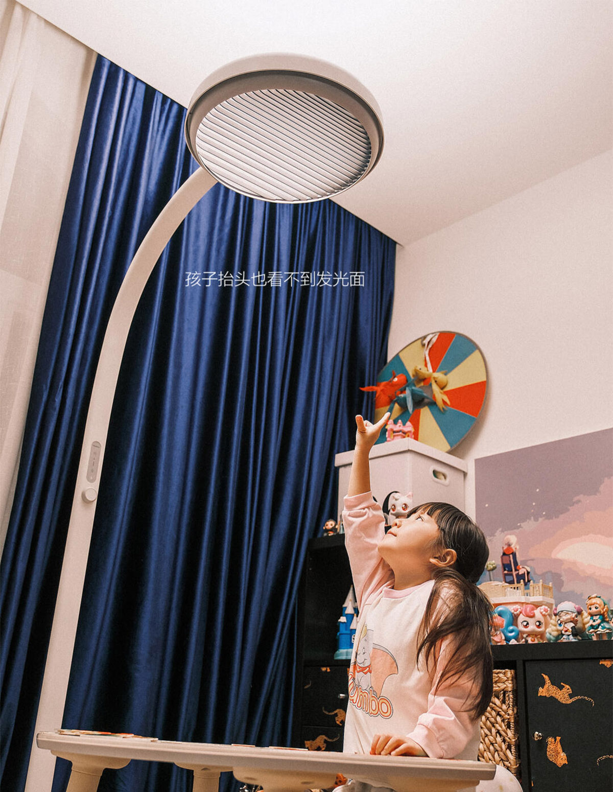 睡前故事时间调到暖黄光,在无声的温柔中酝酿睡意,兴起时她总忍不住伸手转转调色温的旋钮——刚刚好设计在她触手可及的高度,既安全又满足探索欲。