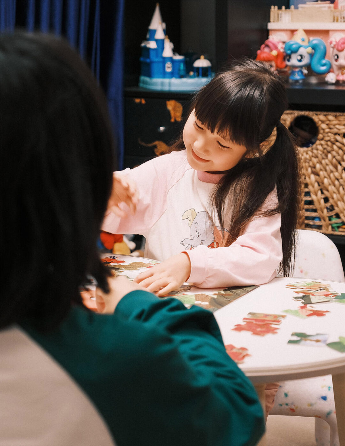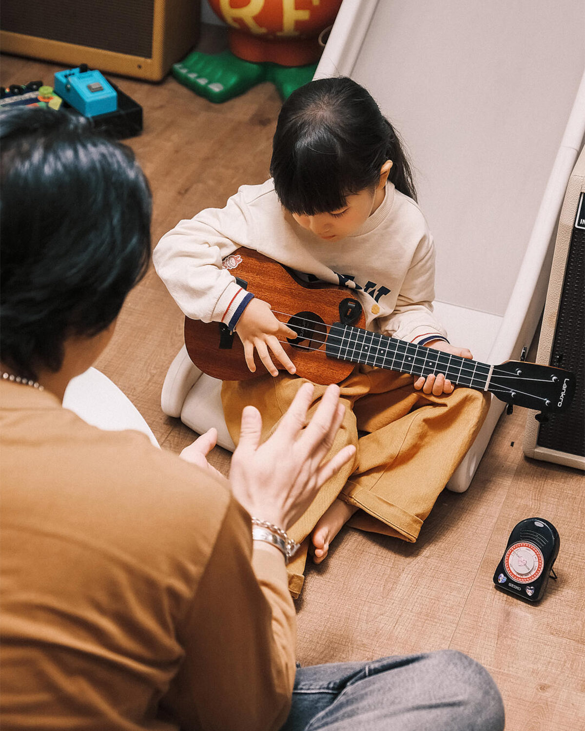 陪她坐在地毯上专注地拼图,小脸上写满认真;听她抱着绘本手舞足蹈地讲,她有她理解的小世界;看她在灯光下和爸爸一起弹小吉他,稚嫩的指法里满是快乐。这些齐聚又平凡的夜晚,却是我最珍视的时光。