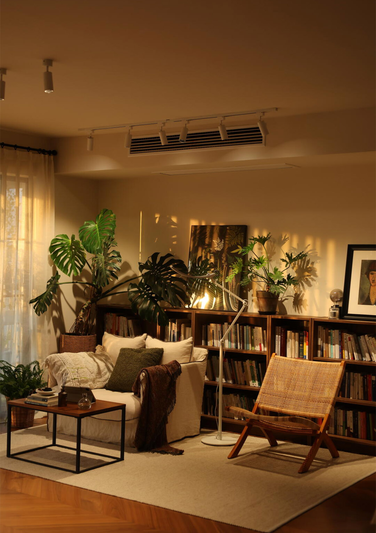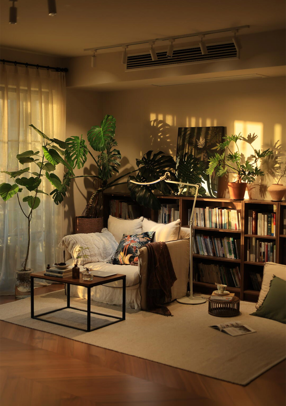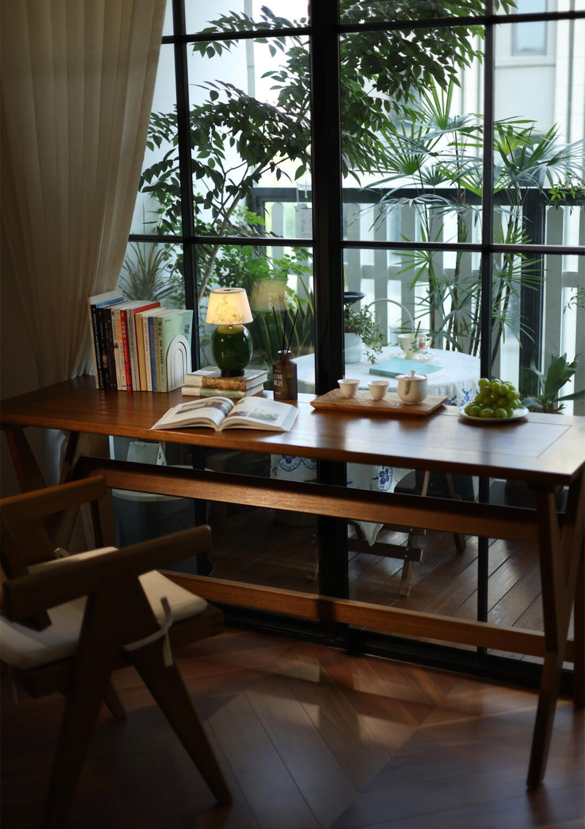 再添上蓬松的抱枕与带着肌理感的民族风毛毯,旁边配一张铁艺与实木碰撞的小茶几,随手放上几本近期要读的书。耳边流淌着轻柔的音乐,曾经在脑海里想象了无数次的阅读场景,如今都成了触手可及的日常。