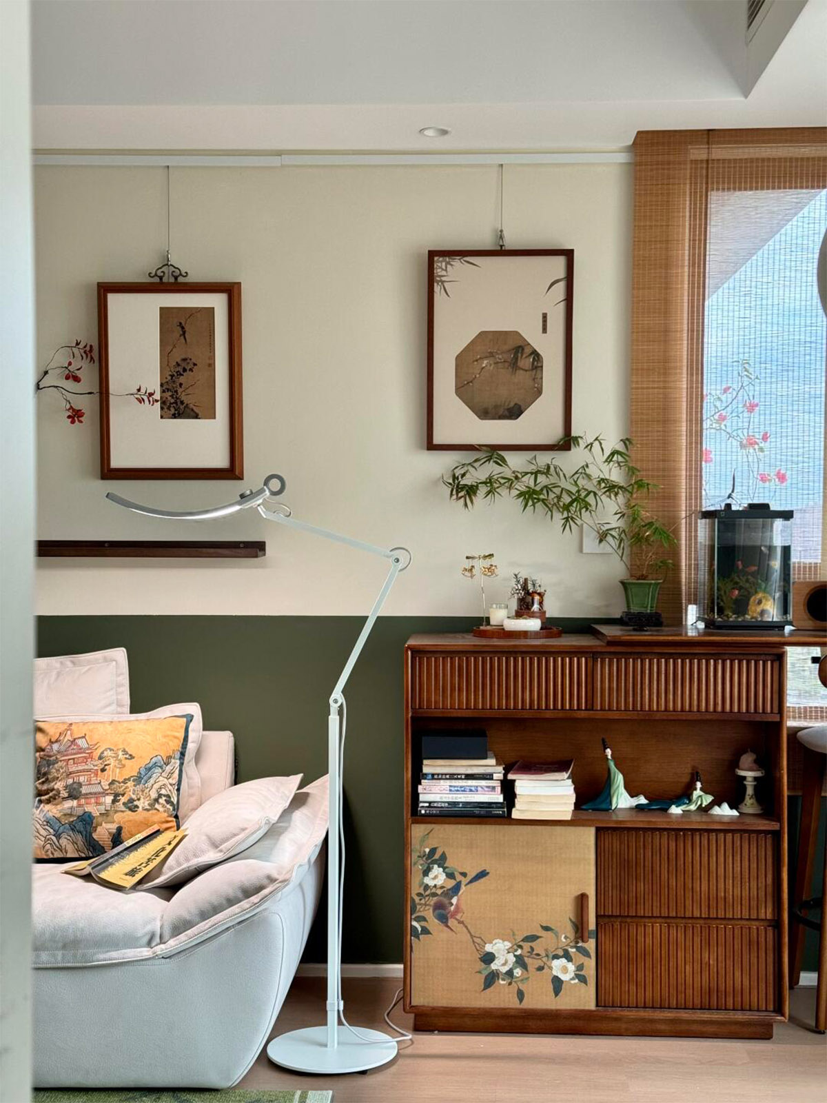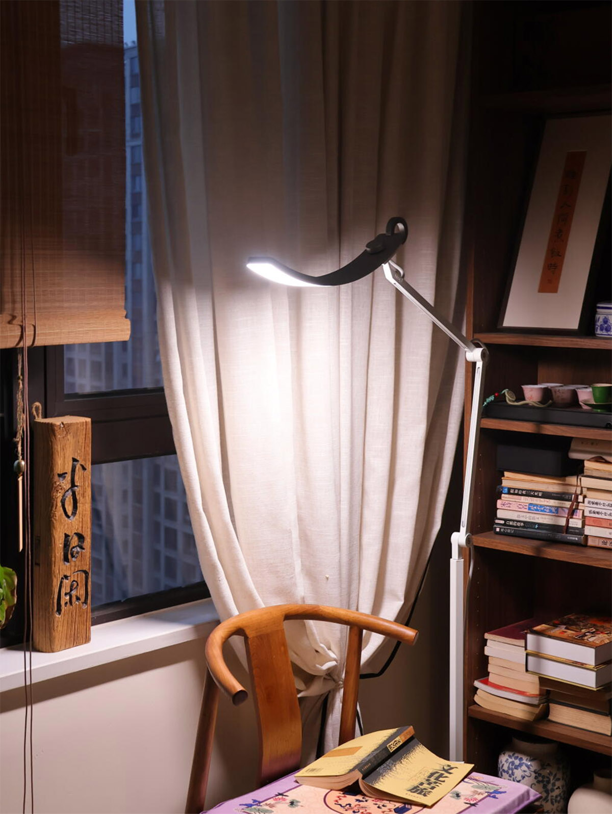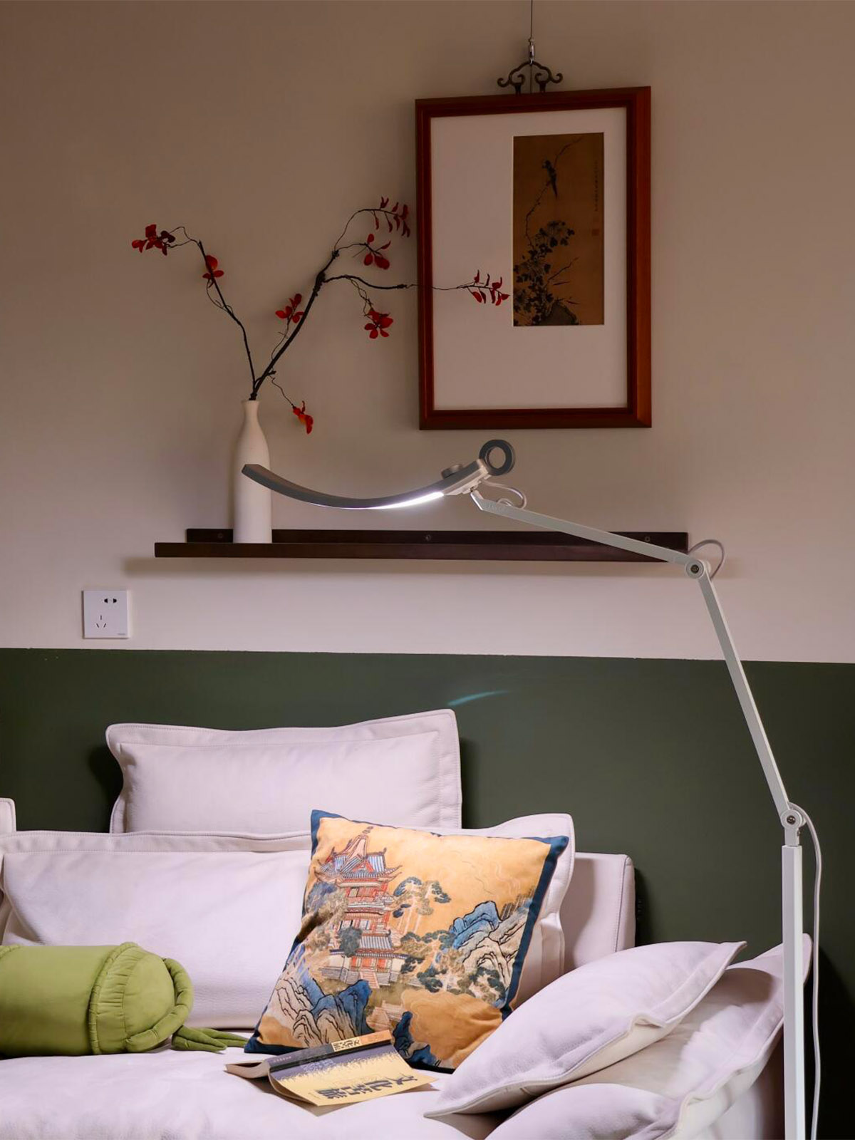 追剧时把光调成月色,灯臂微微俯身,像在和我一起看剧中人的悲欢。在这个被光包裹的角落里,连时光都变得柔软。
