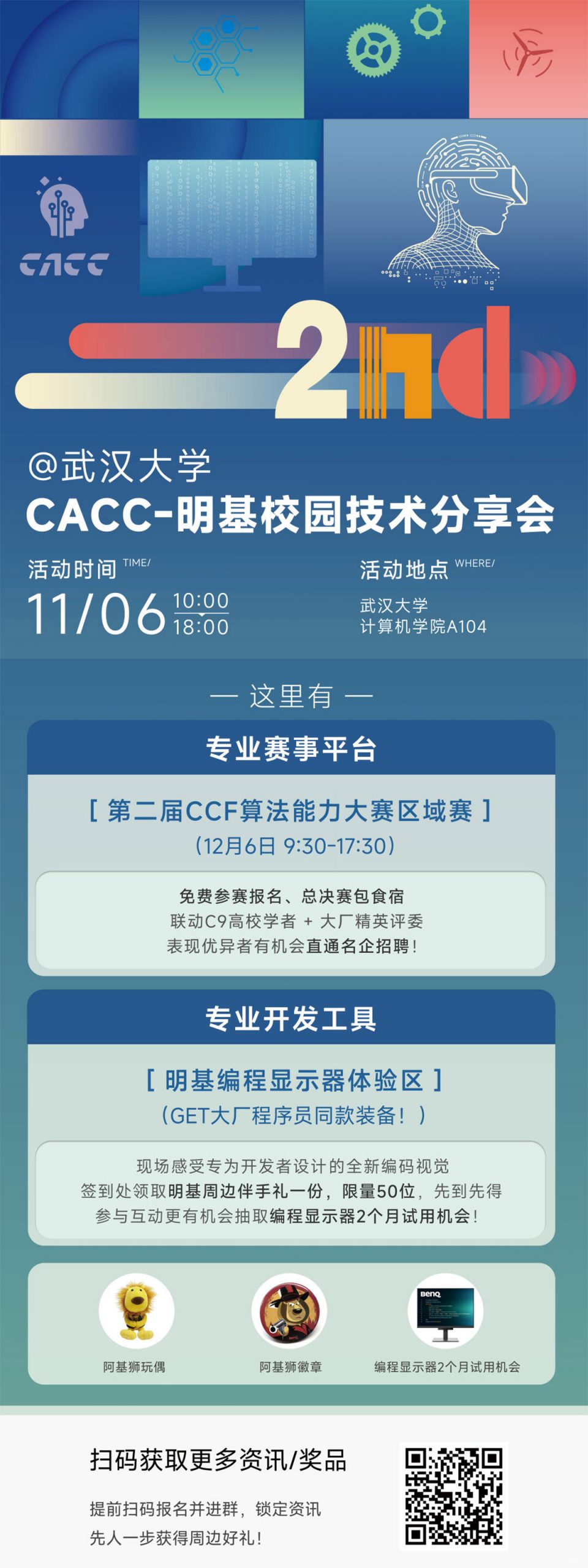 这里有算法大赛绿通机会,第二届CCF算法能力大赛区域赛启动!免费参赛报名、总决赛包食宿,联动C9高校学者 + 大厂精英评委,表现优异者有机会直通名企招聘!这里有专业装备深度体验,感受“大厂程序员同款”编码视觉,专为开发者设计的屏幕,编程效率🆙 舒适度🆙 另外,活动当天到场即领明基限量周边 🎁 参与互动抽奖,有机会获得明基编程显示器体验机会!