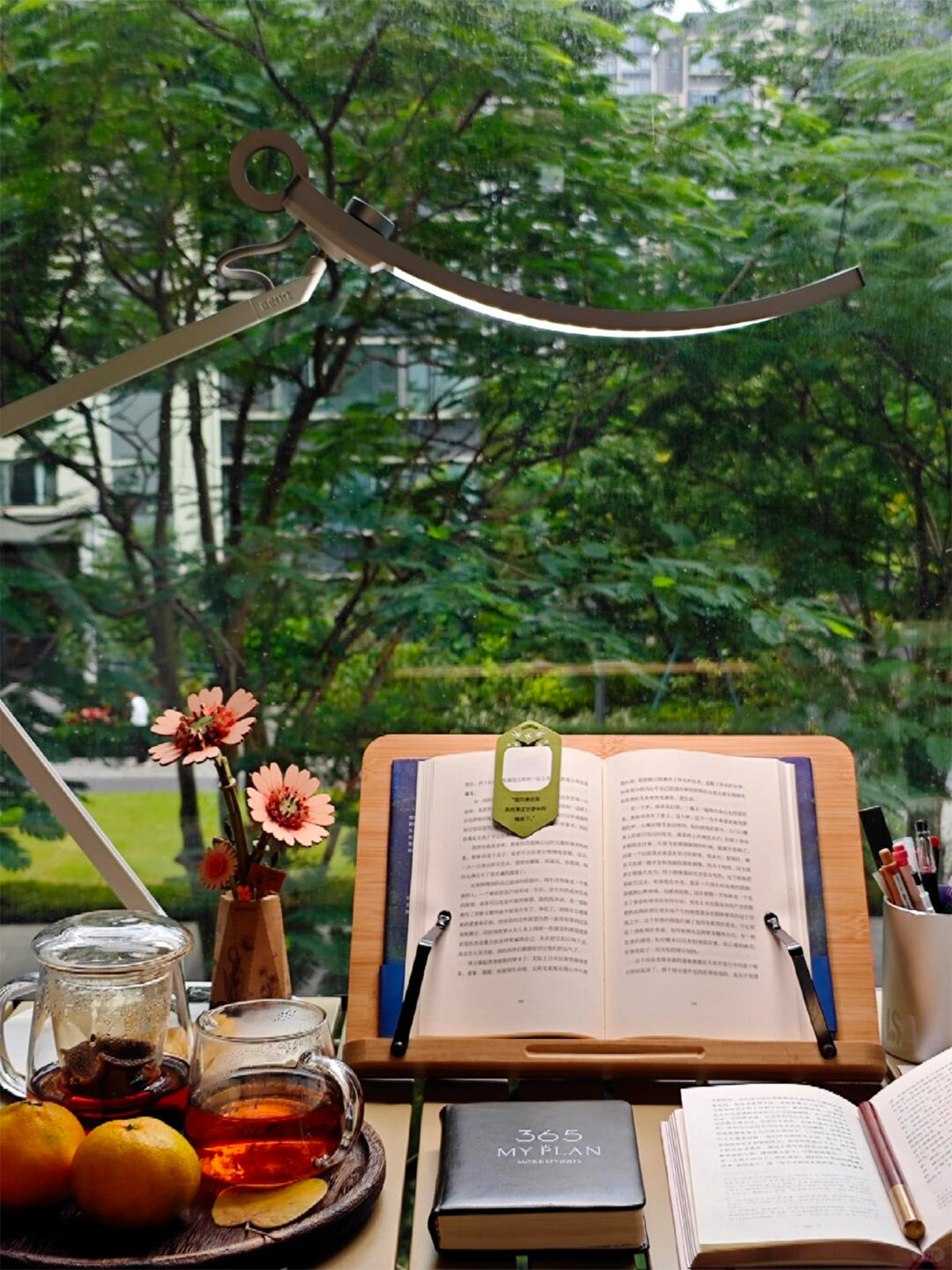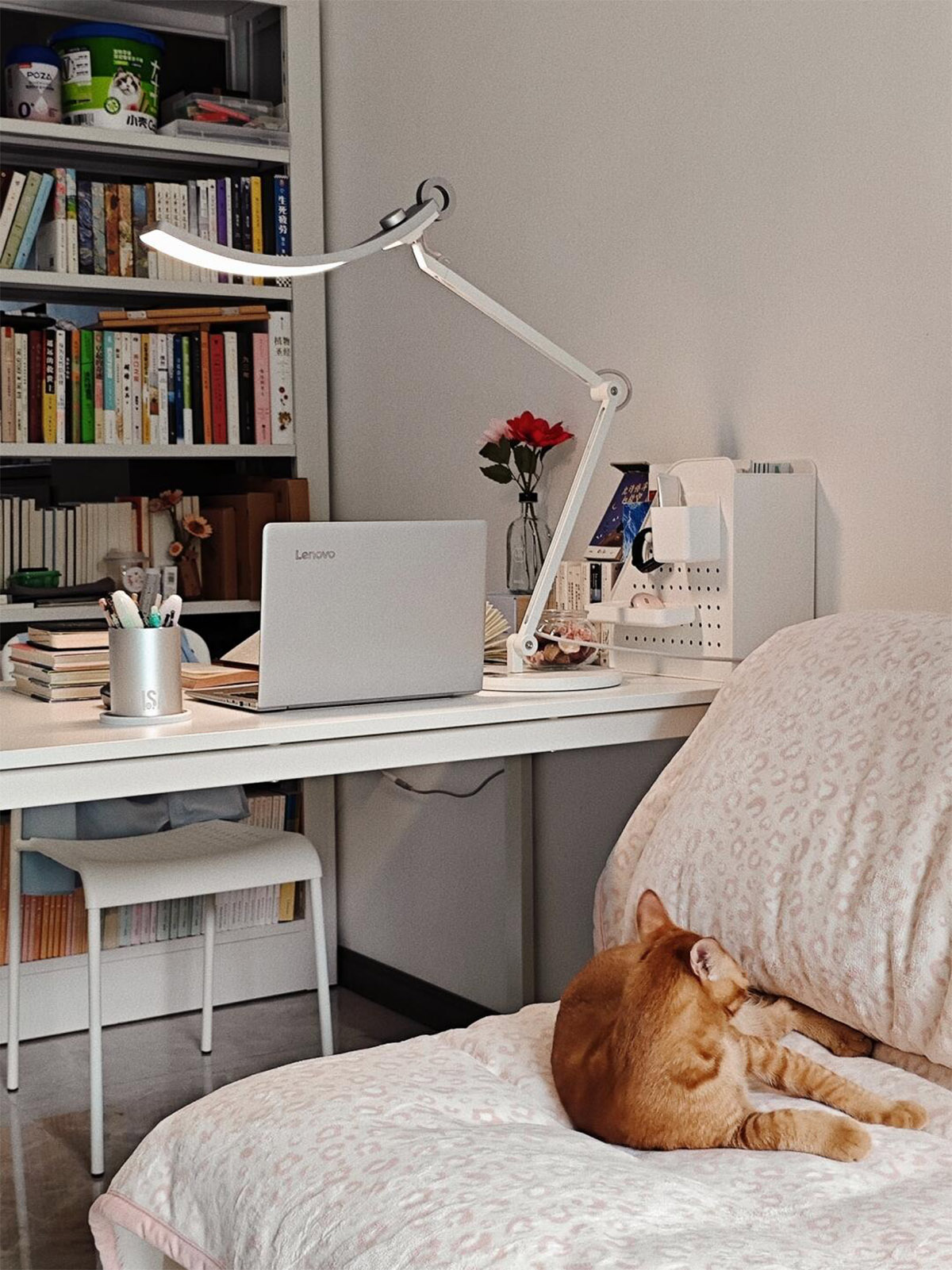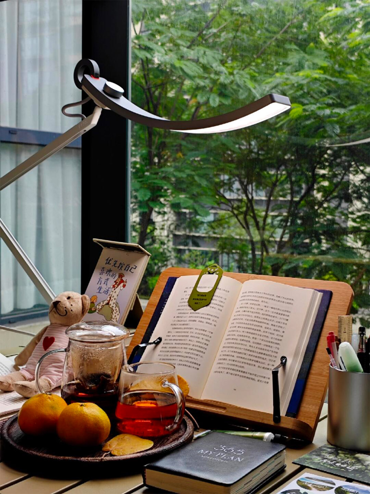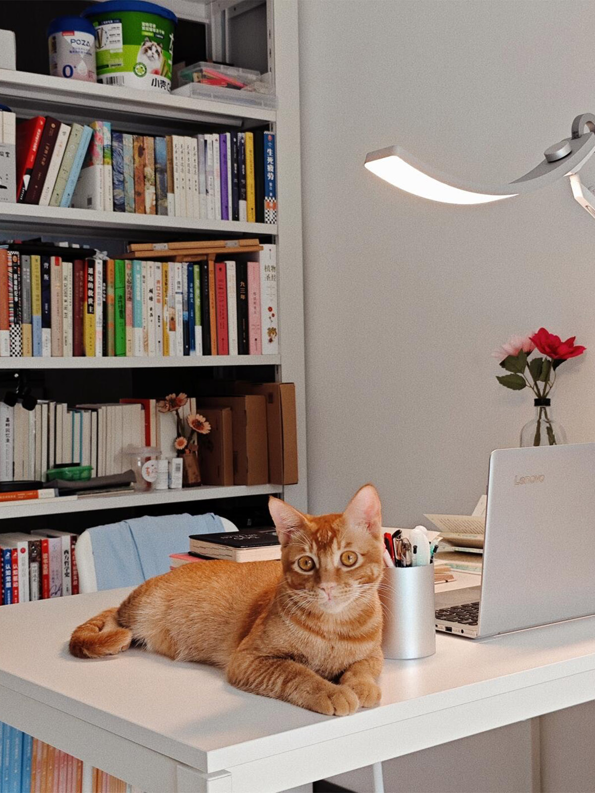 让我感受到精神愉悦的除了树木、书籍、小猫之外,还有最近新入手的明基WiT弯月台灯。这款台灯可以针对书本和屏幕调节不同的阅读模式,自动调节到合适的色温和亮度,眼睛不容易累。