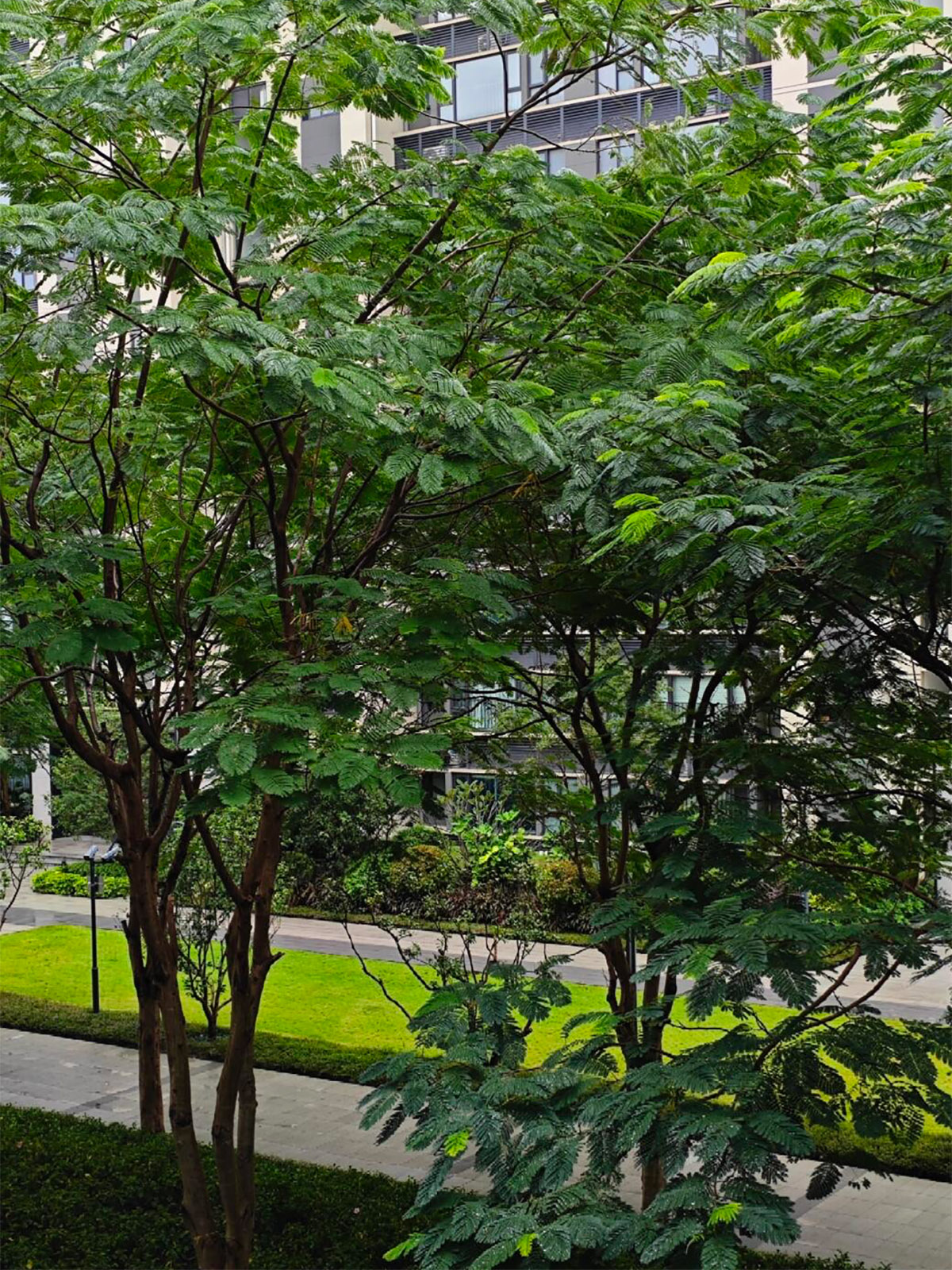 我家的客厅外面是两棵树。虽然已入秋,它们依然翠绿,依然充满生机。